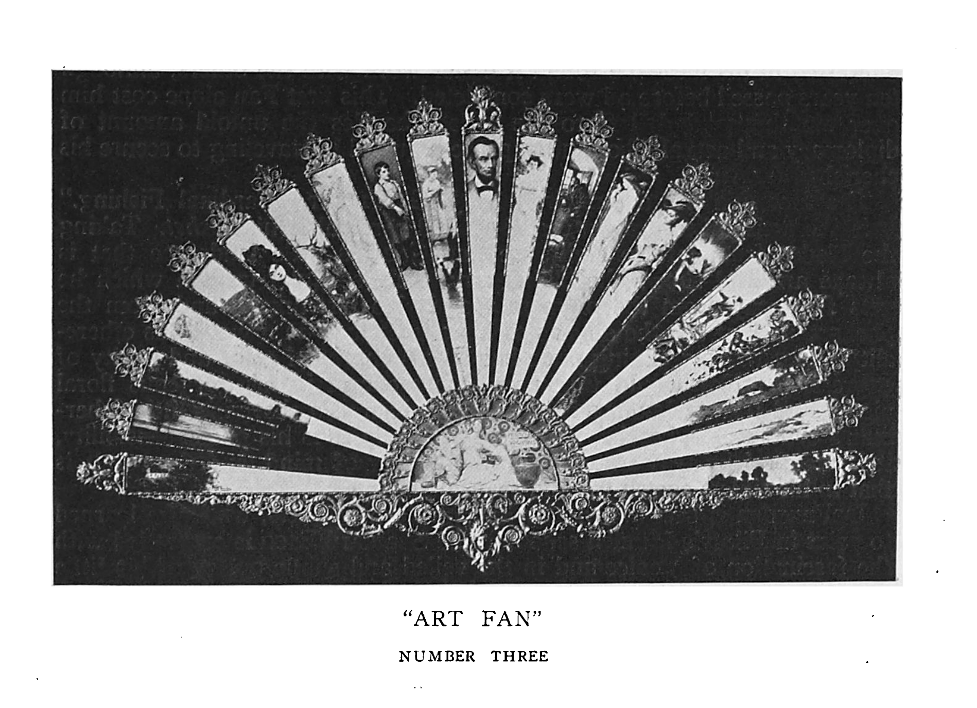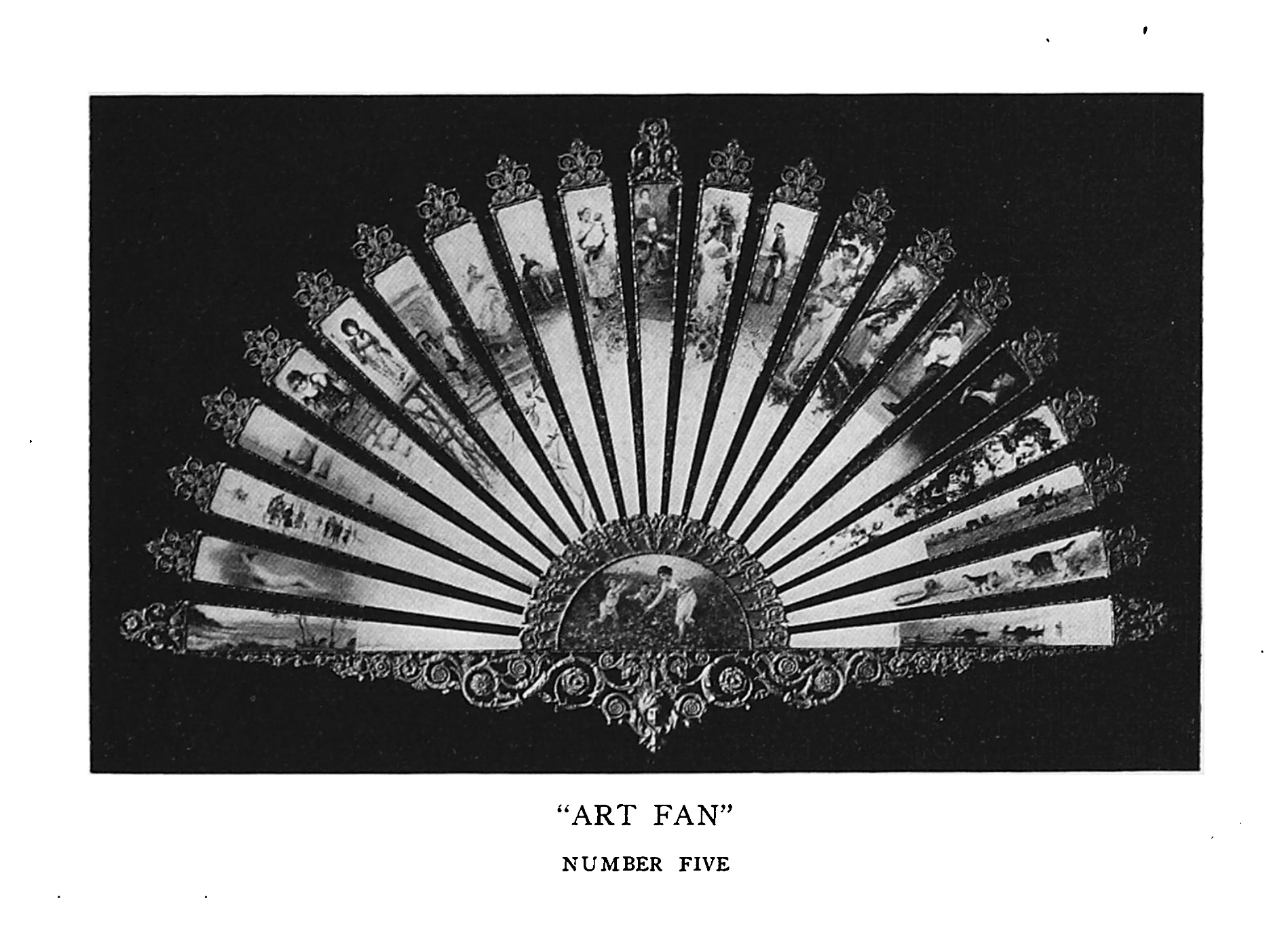 Alexander's love for art and connections to the artists brought him to develop a project of massive proportions. His idea, was to commission artists to each paint a blade of a fan, sadly ivory blades. (I loathe this aspect of this story, but must remember the time in which this project was taken on.) The blades would then be curated, and assembled into fittings designed and made by Louis Comfort Tiffany.
